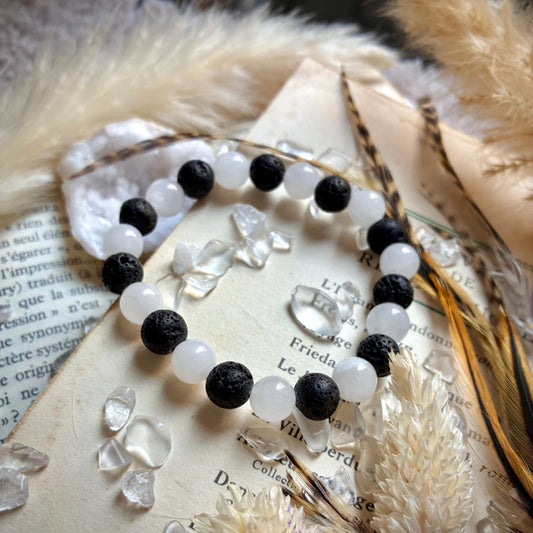 Pierre de lave et Jade Blanc "Apaisement "