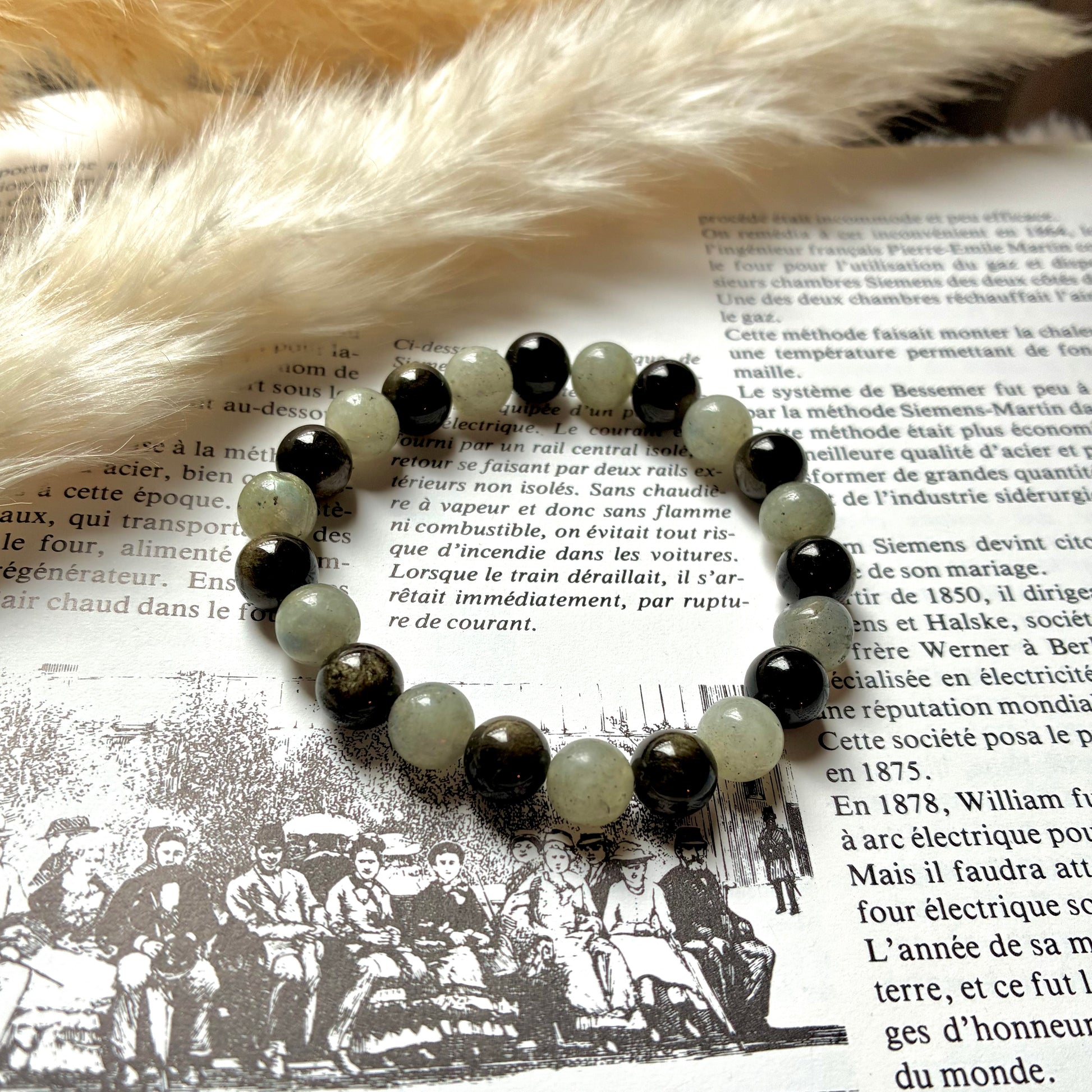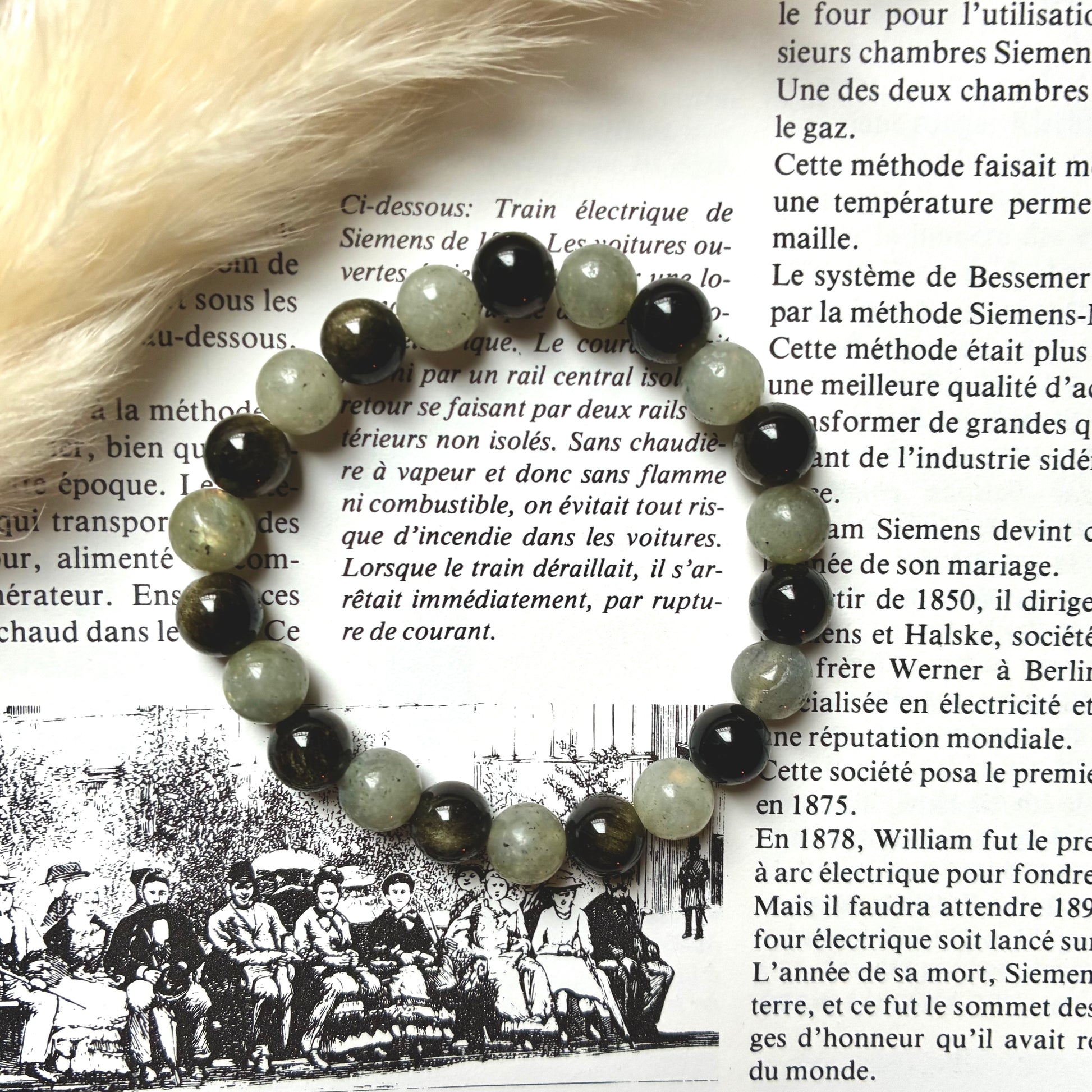 Un bracelet composé de labradorite et d’obsidienne dorée peut offrir de nombreuses propriétés bénéfiques pour l’équilibre mental, émotionnel et physique. La labradorite est une pierre de protection puissante, reconnue pour agir comme un véritable bouclier contre les énergies négatives, empêchant leur absorption. Elle apporte lumière et clarté, élève la conscience et aide à mieux comprendre les messages de l’inconscient. La labradorite renforce la confiance en soi, la foi en ses capacités et soutient les périodes de transformation personnelle. Elle stimule également les facultés d’autoguérison et favorise l’équilibre énergétique global.