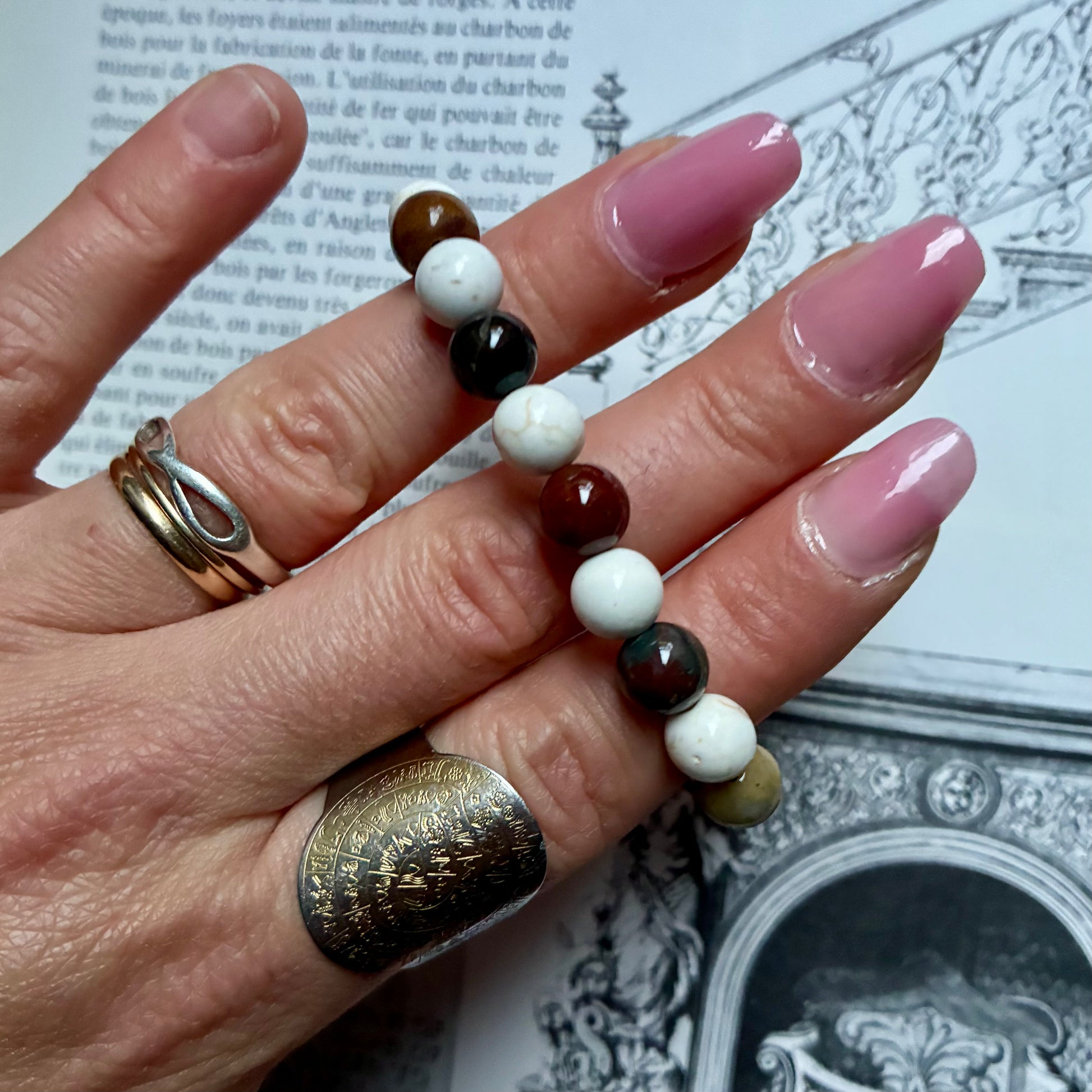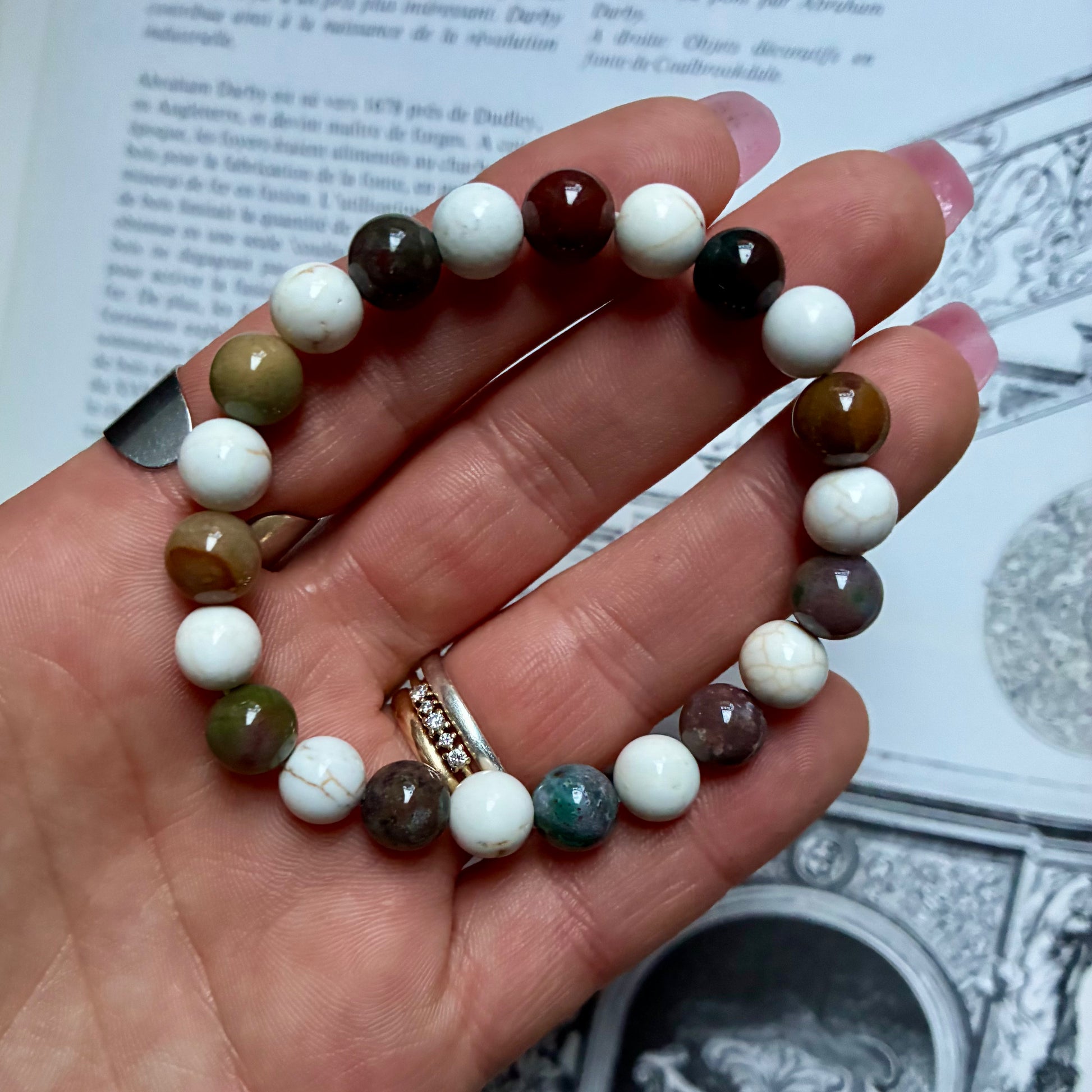 Bracelets bicolore Magnésite et Agate Indienne en perle de 8 mm