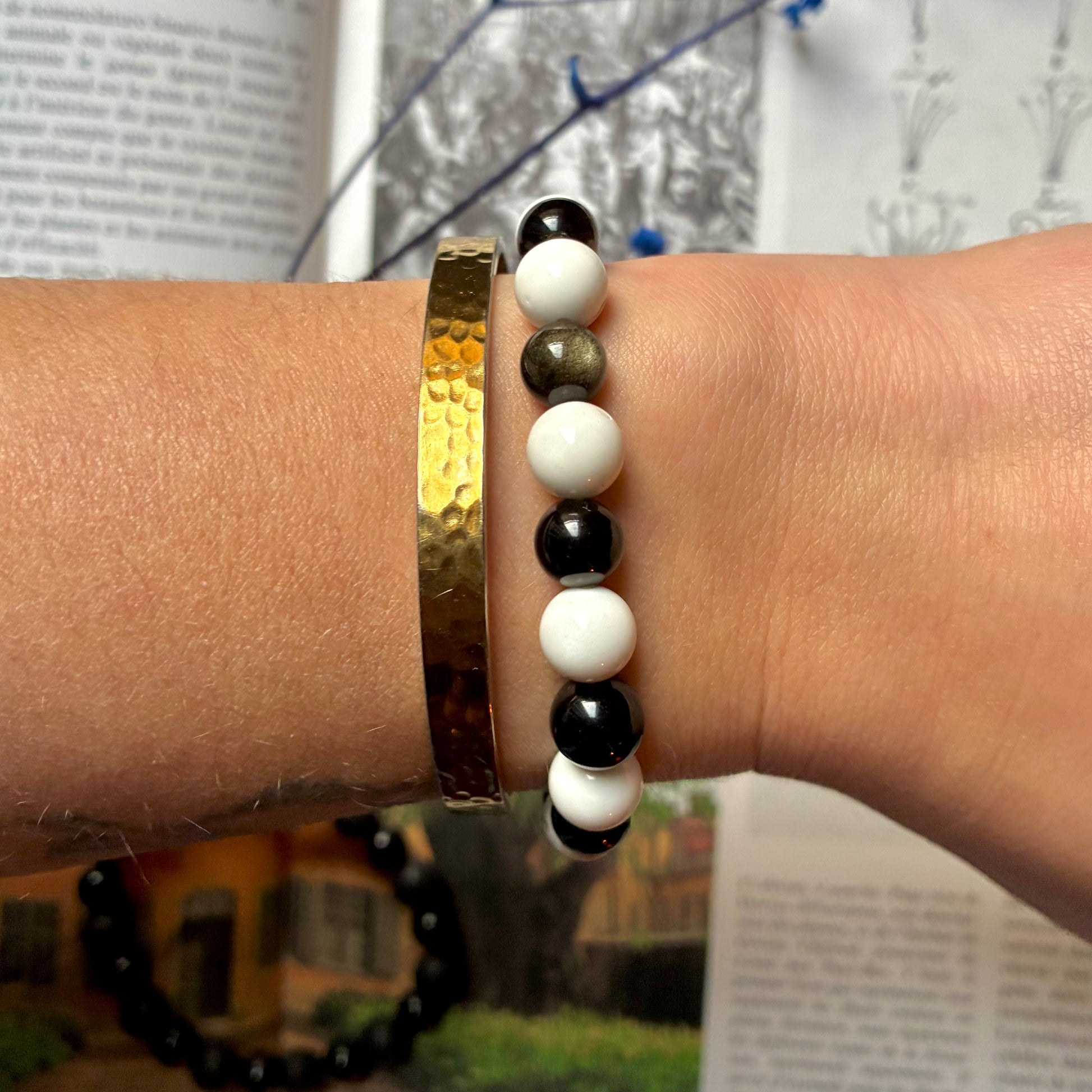 Bracelets bicolore Magnésite et Obsidienne dorée en perle de 8 mm