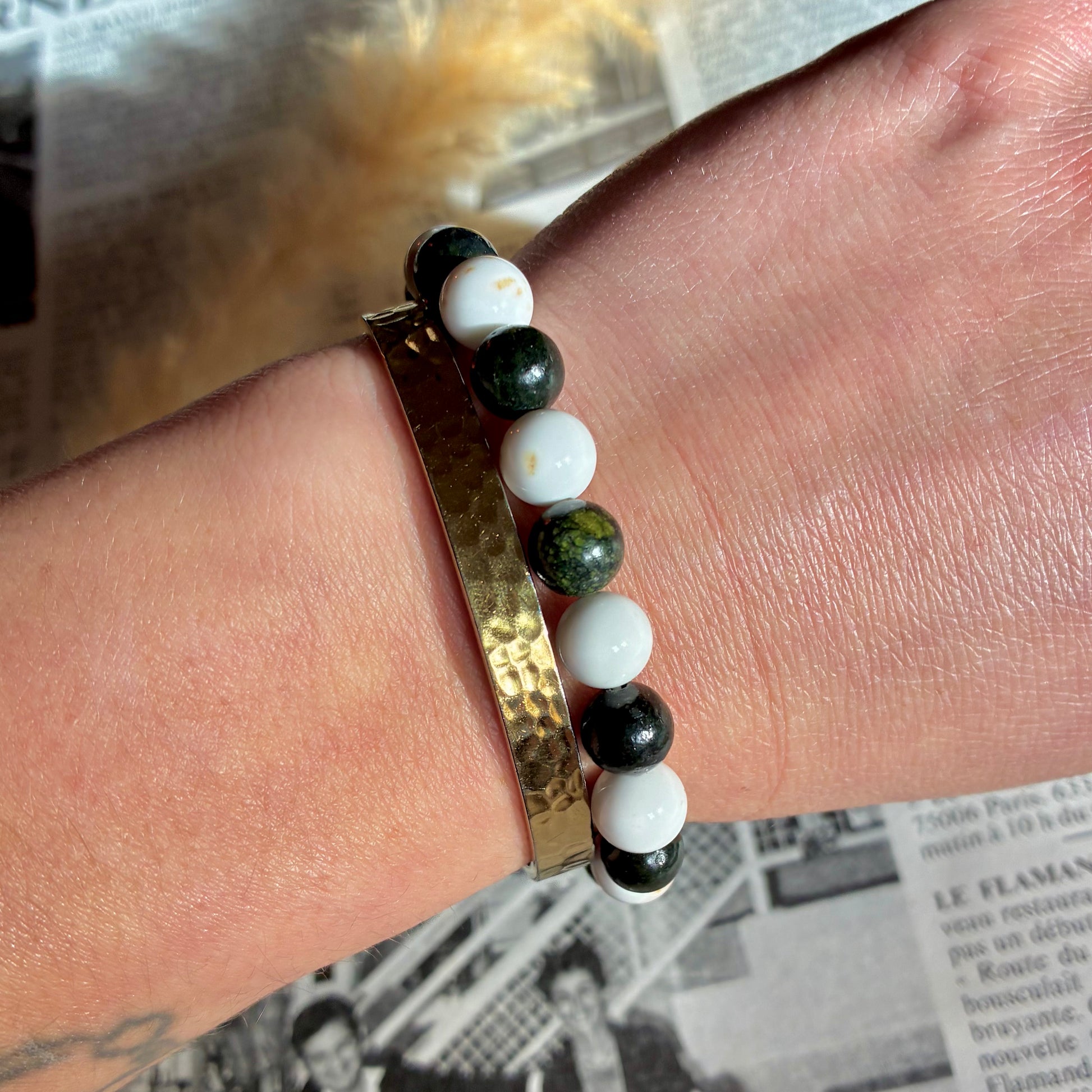 Bracelets bicolore Magnésite et Serpentine en perle de 8 mm